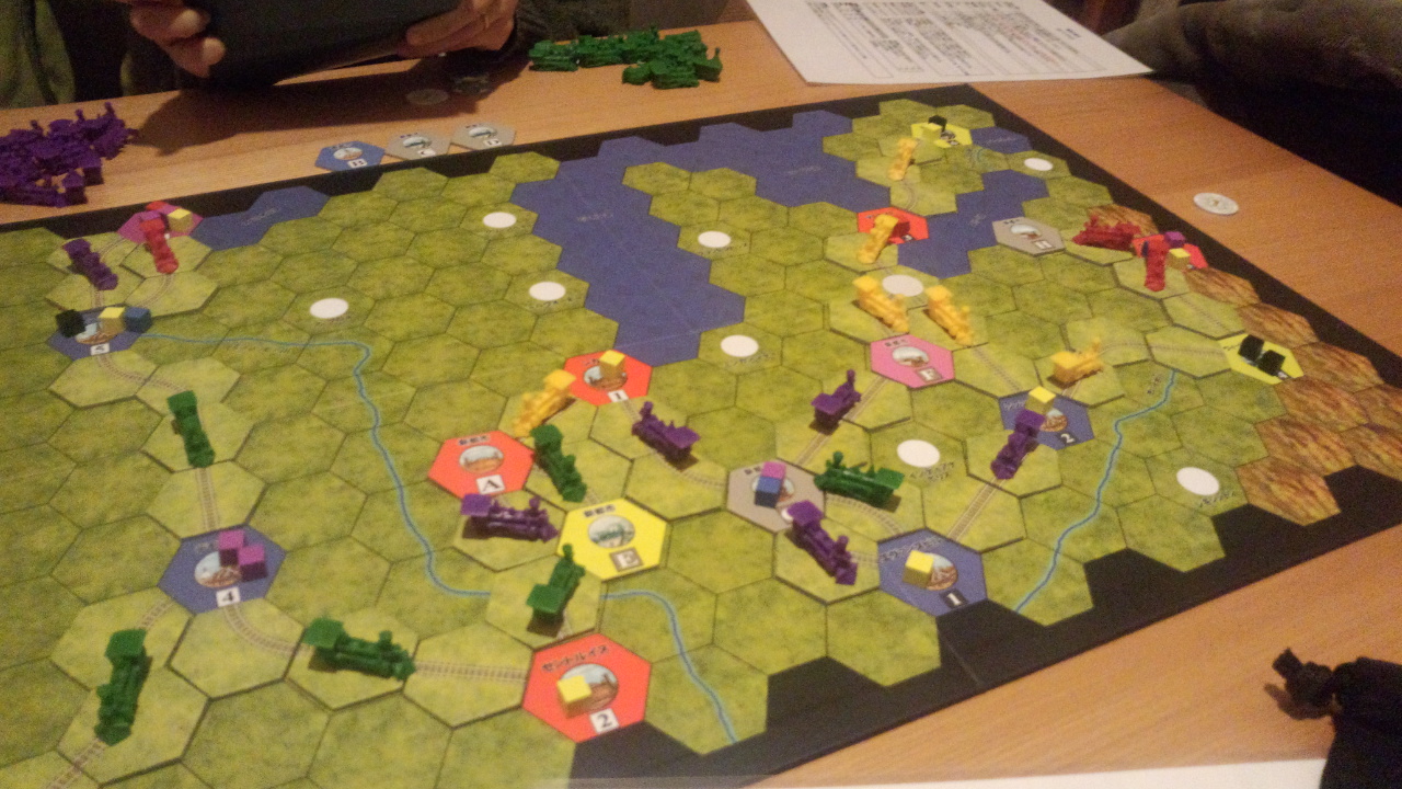 また、線路を敷設した数に応じて勝利点が入るので、これも数えて勝者を決める。