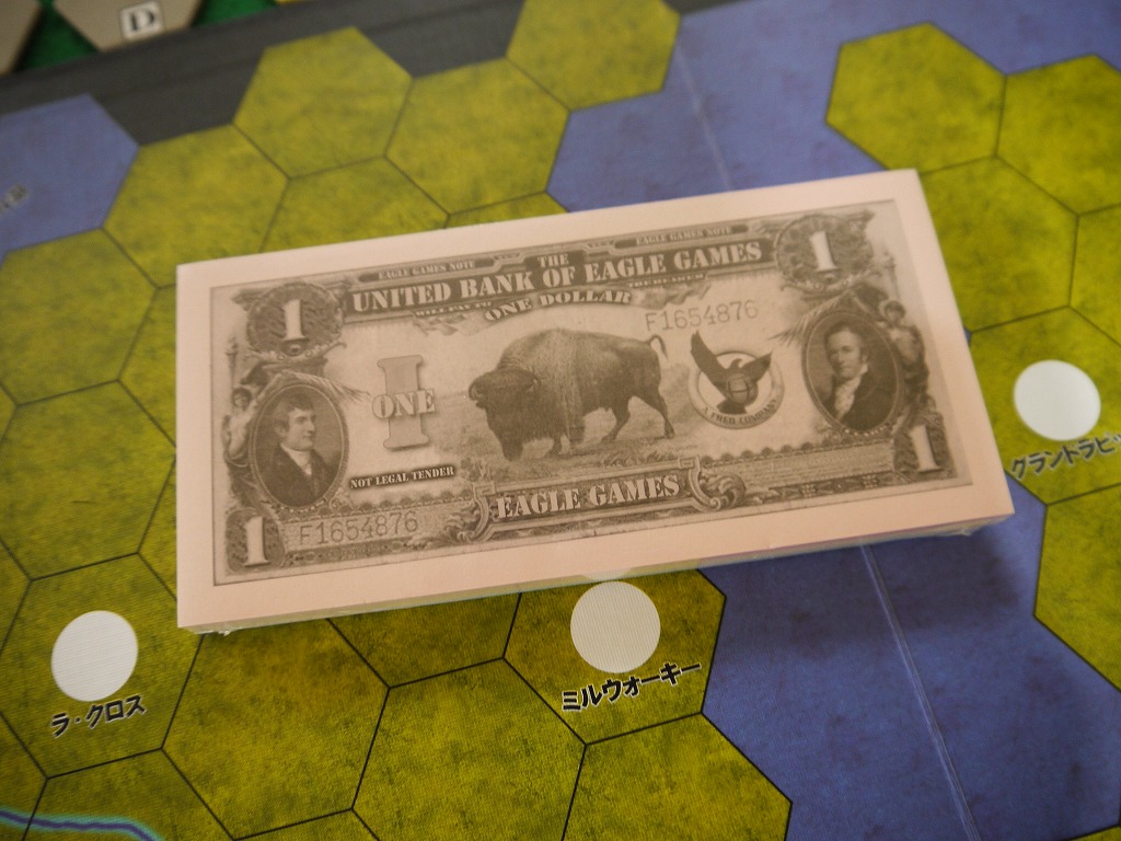 なお、最初プレイヤーは2株発行状態から始まる。10金を持っているがこれはいわば借金だ。さすがワレス・・・。
