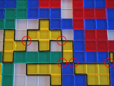 2:ブロックの角と角をあわせると置くことができる。同色の辺は接したらダメ。