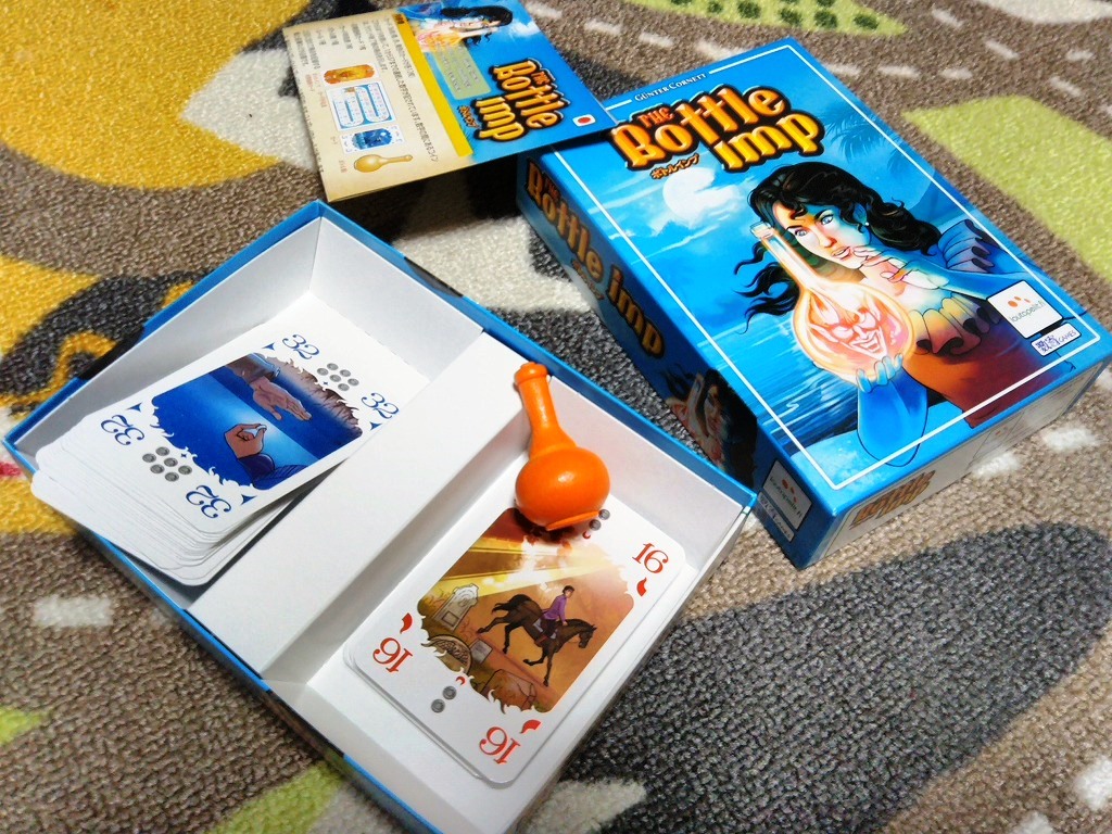 長らく入手困難だったボトルインプを、フィンランドのメーカーが再版してくれました。その際に日本語版を数寄ゲームズが取り扱い、このトリックテイキングの名作が入手しやすくなりました!面白いですよ、これ。