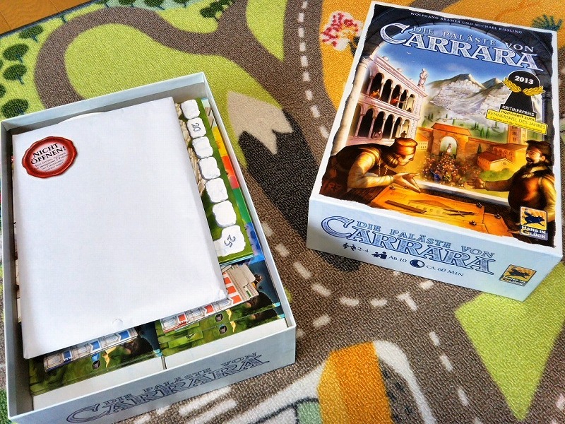 このゲーム、さんざん言及されていることですが、最初から箱の中に拡張ルールが入っています。しかし封筒で厳重に梱包されていて、「最初は絶対に基本ルールで遊べよな!」状態。