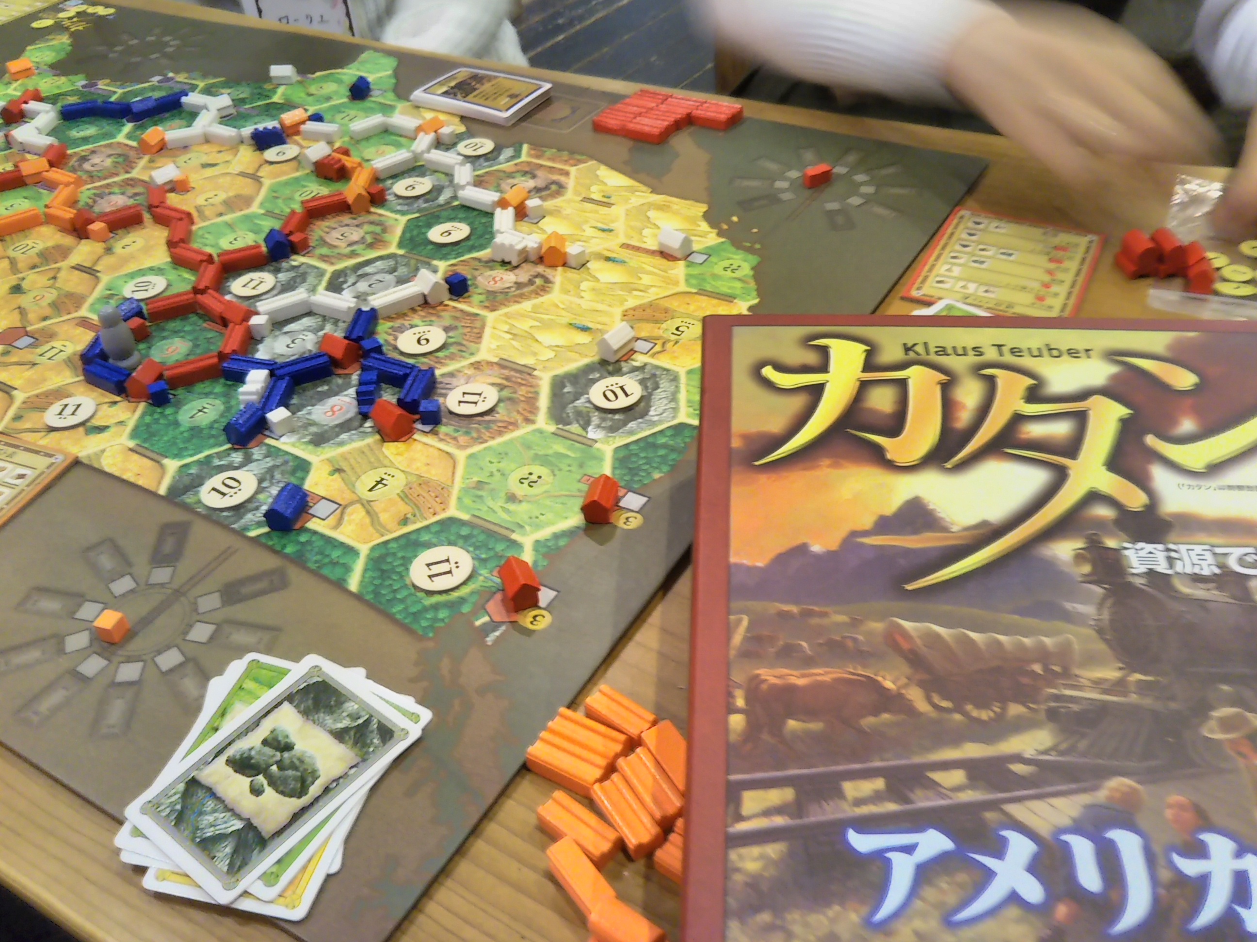 この「アメリカの開拓者」は、固定の地形や数字、広いマップなどが目を引きますが、基本は「カタン」のルールを踏襲しています。