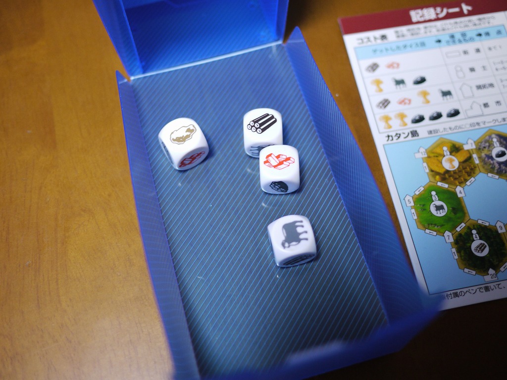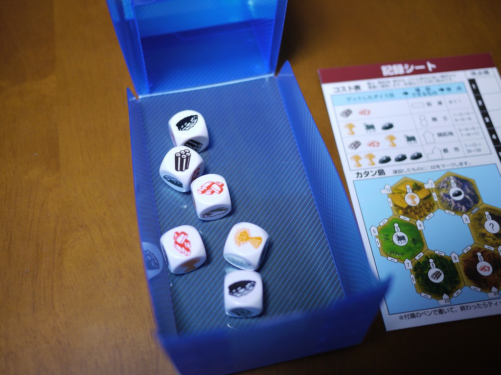 さて、ジーピー社が国内版を出してくれたおかげで、容易にに安く手に入るダイスゲーム:カタンダイスを遊んでみましょう。