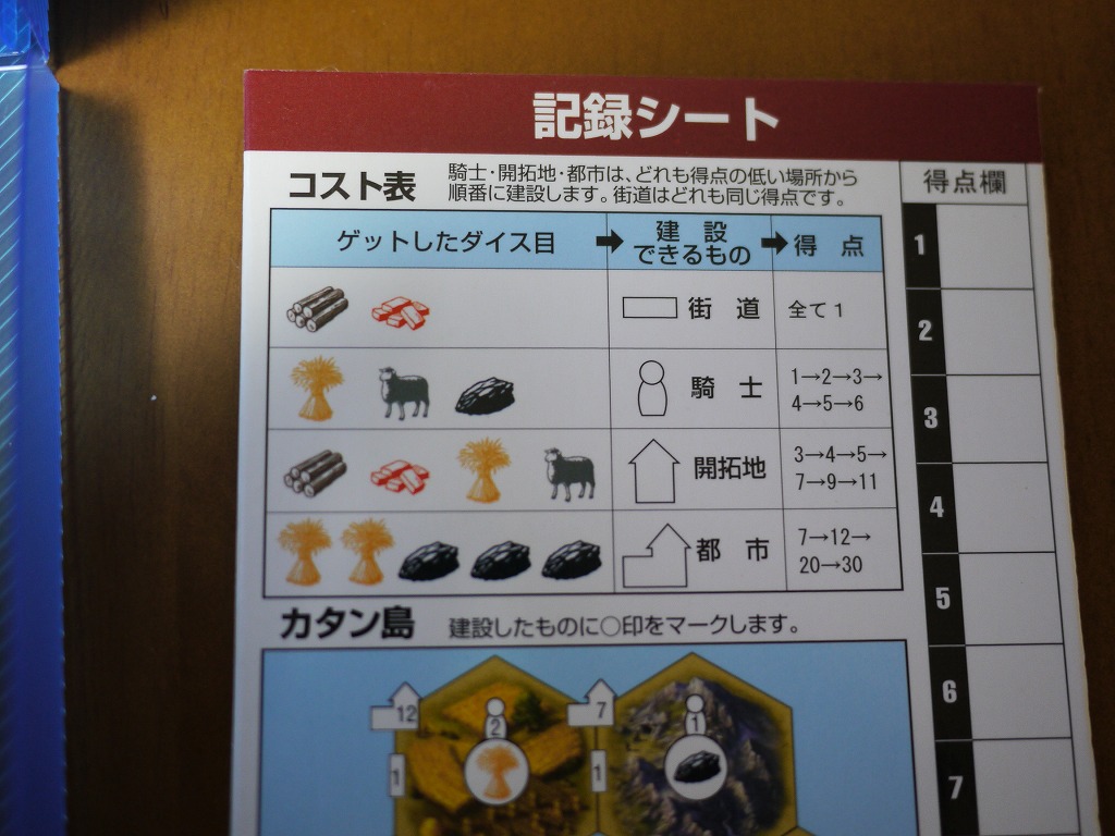 要するにこのダイスの目が獲得資源となって、本家カタンと同じように建物を立てていくのだ。建設コストも同じ。