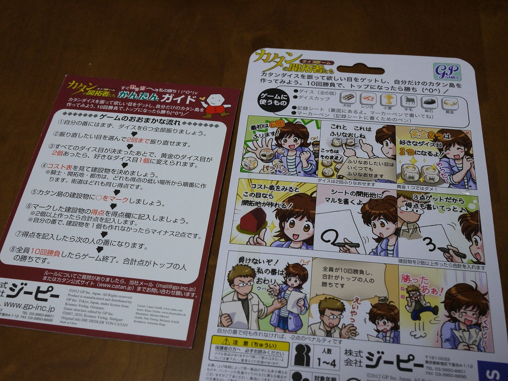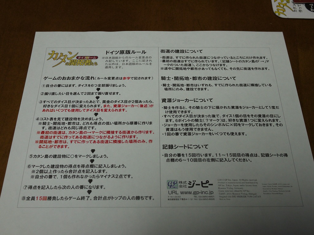 まあジーピー社のサイトでルールを配布しているので、印刷して読んでおこう。ちなみにドイツ版のルール和訳が書いてある。