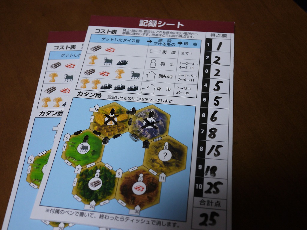 本家カタンと違い、都市はかなり作りづらい。騎士の効果をうまく活用するか、運が必要。今回は1つ作れたが。