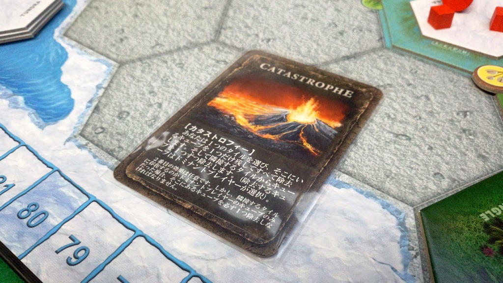 ただ、最初に配置される地域が砂漠と山で、ドミナントアクションで狙える点数が低めです。これを逆手にとって、人気が集中する湿地や海をしり目に、山や砂漠でドミナントを不動のものとし、最後の得点計算で一気にまくるという戦術も取れます。