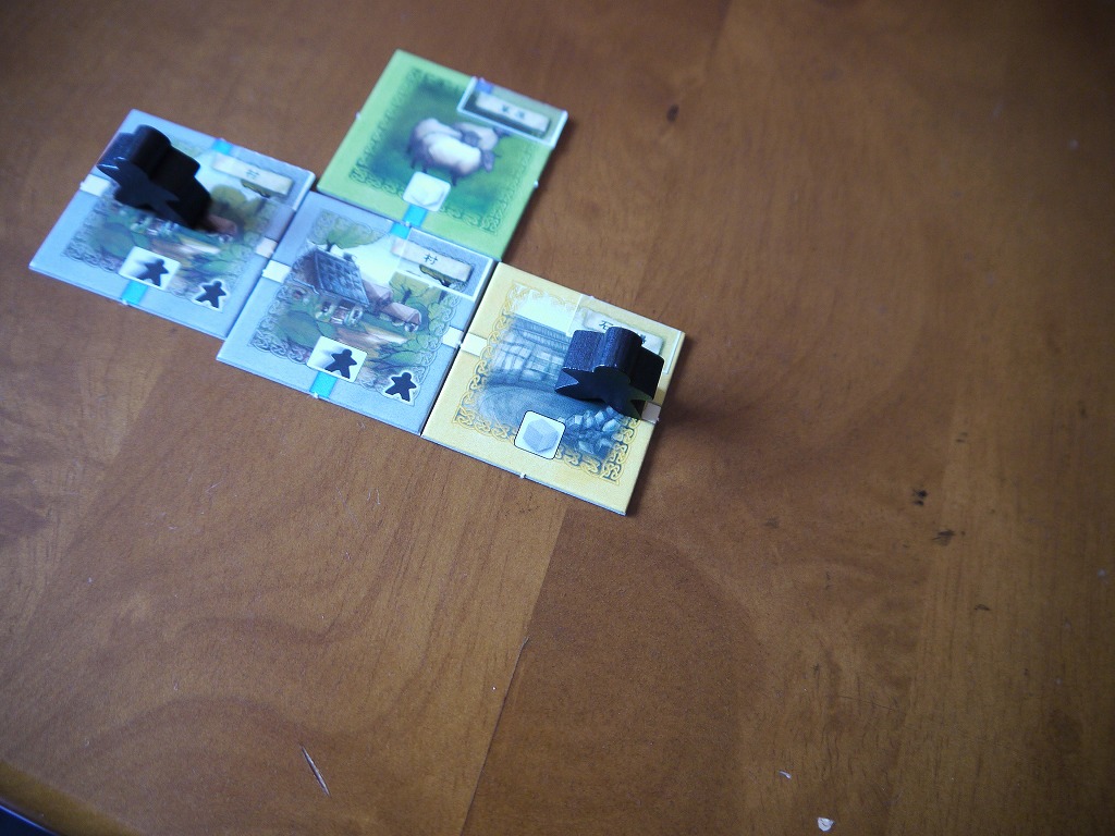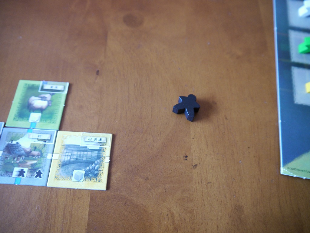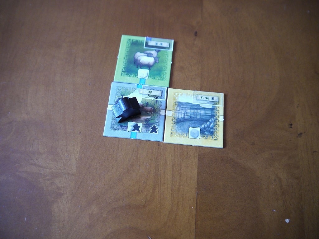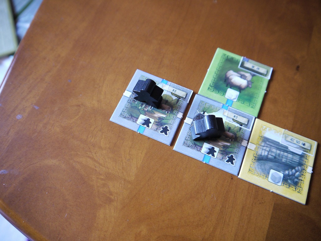黒ミープルを少しずつ動かしていくのは結構重要。なにせこのミープルの周りにしかタイル配置できないので。
