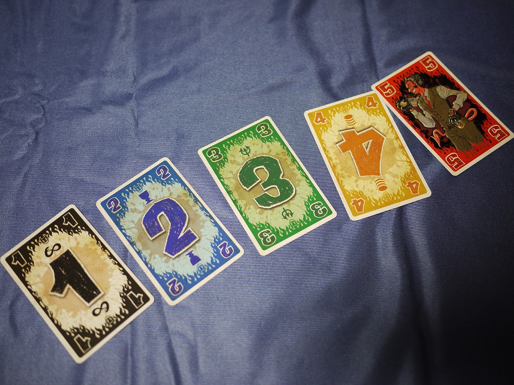 で、数字は1~5までなので、同じカードが4枚ずつデッキに存在する。