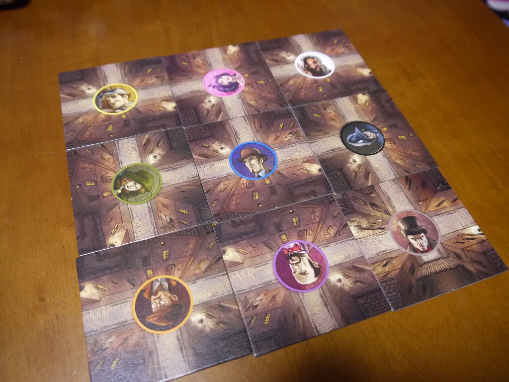最後にジャック側が人物タイルを秘密裏に引き、準備完了!もちろん引いたタイルが切り裂きジャック。犯人です。