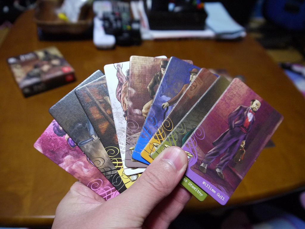 対等な条件ではなく、互いに勝利条件が違う「ホームズ側」「ジャック側」に分かれて戦う2人用ゲーム。ちなみに切り裂きジャックは実在の人物で、ホームズは架空の人物。実際には対決してないよという知識をゲーム前にひけらかそう。