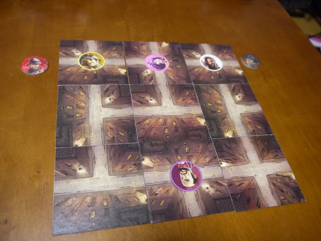 最初はジャックの正体を隠すゲームかと思っていたのですが、プレイしているうちにすぐ「あ、あれがジャックだな」と検討はつきます。しかし「容疑者を一人に絞らないといけない」ため、容疑者が少なくなってからはタイルの方向と探偵の移動を予測して動かしていきます。まるで詰将棋のよう。