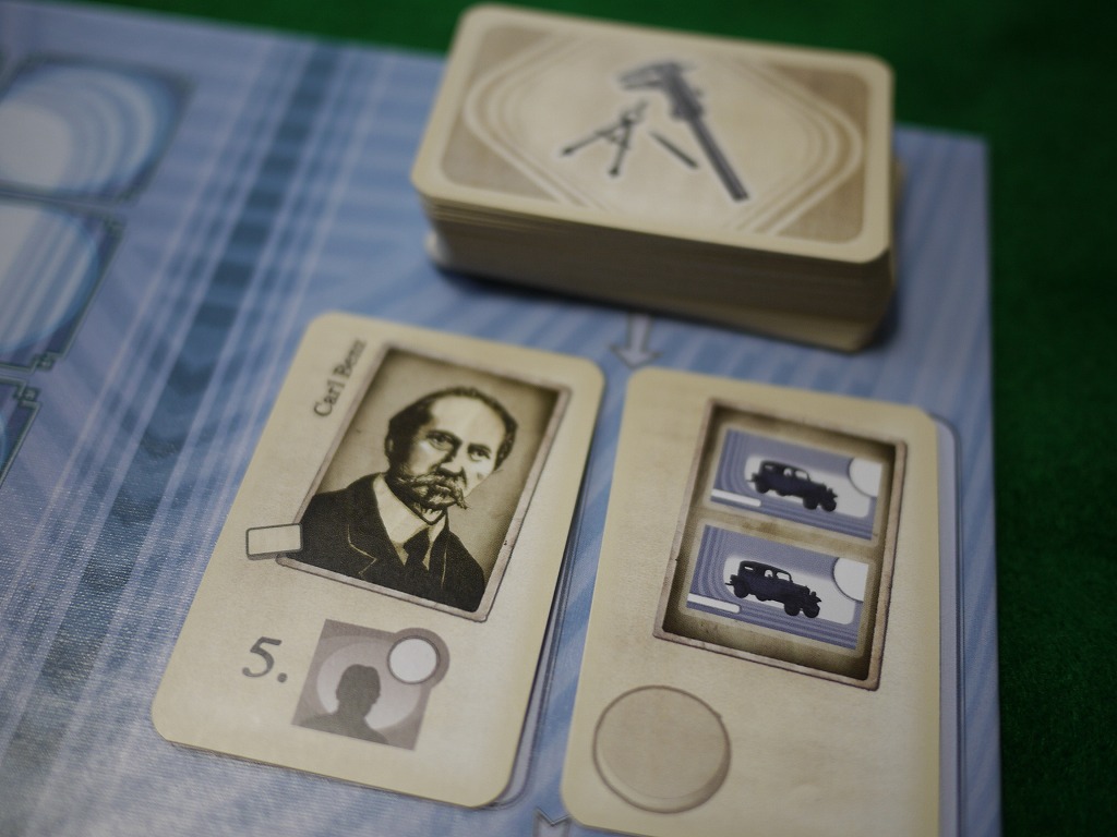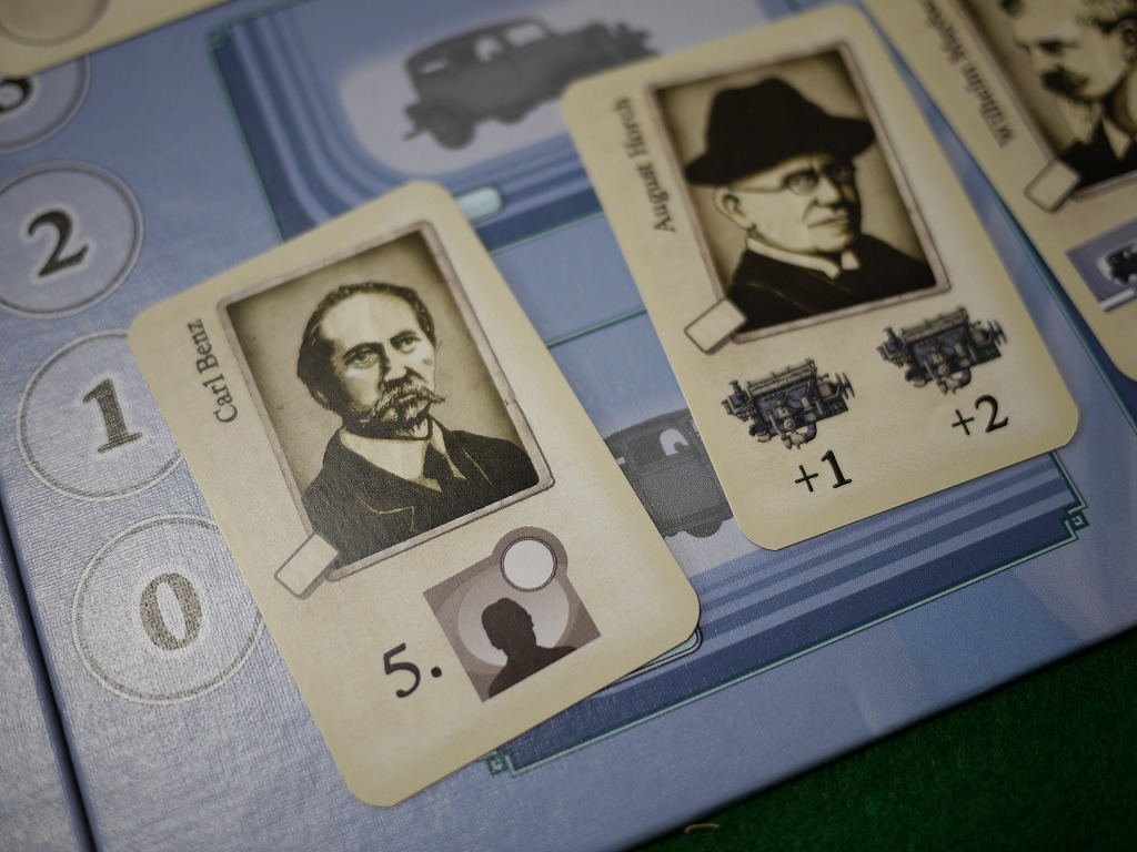 恒久的な効果を発揮する偉人カードがあります。例えば5人目のバイヤーを登場させられる「ベンツ」、レースエンジンを更新する度、レーストラックを進められる「ブガッティ」などが登場します。