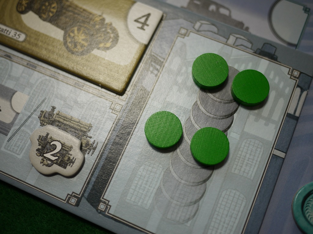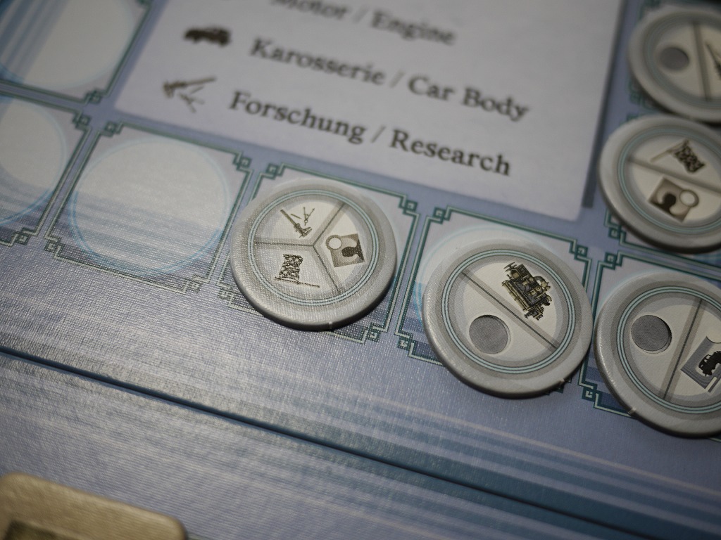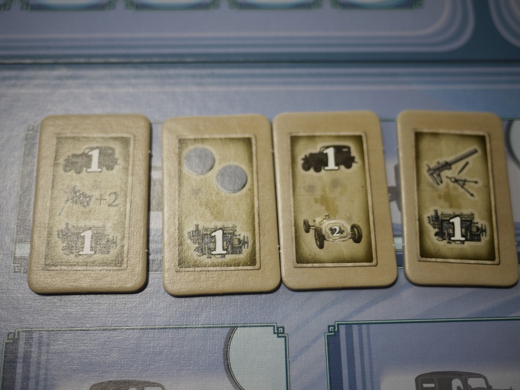 見事車を売ったプレイヤーは、その車の価格チップを勝利点としてもらいます。しかし価格重視のバイヤーに買われた時だけは、価格チップを2倍した勝利点がもらえるのです。どうしても安値のチップを買われるので、救済処置。