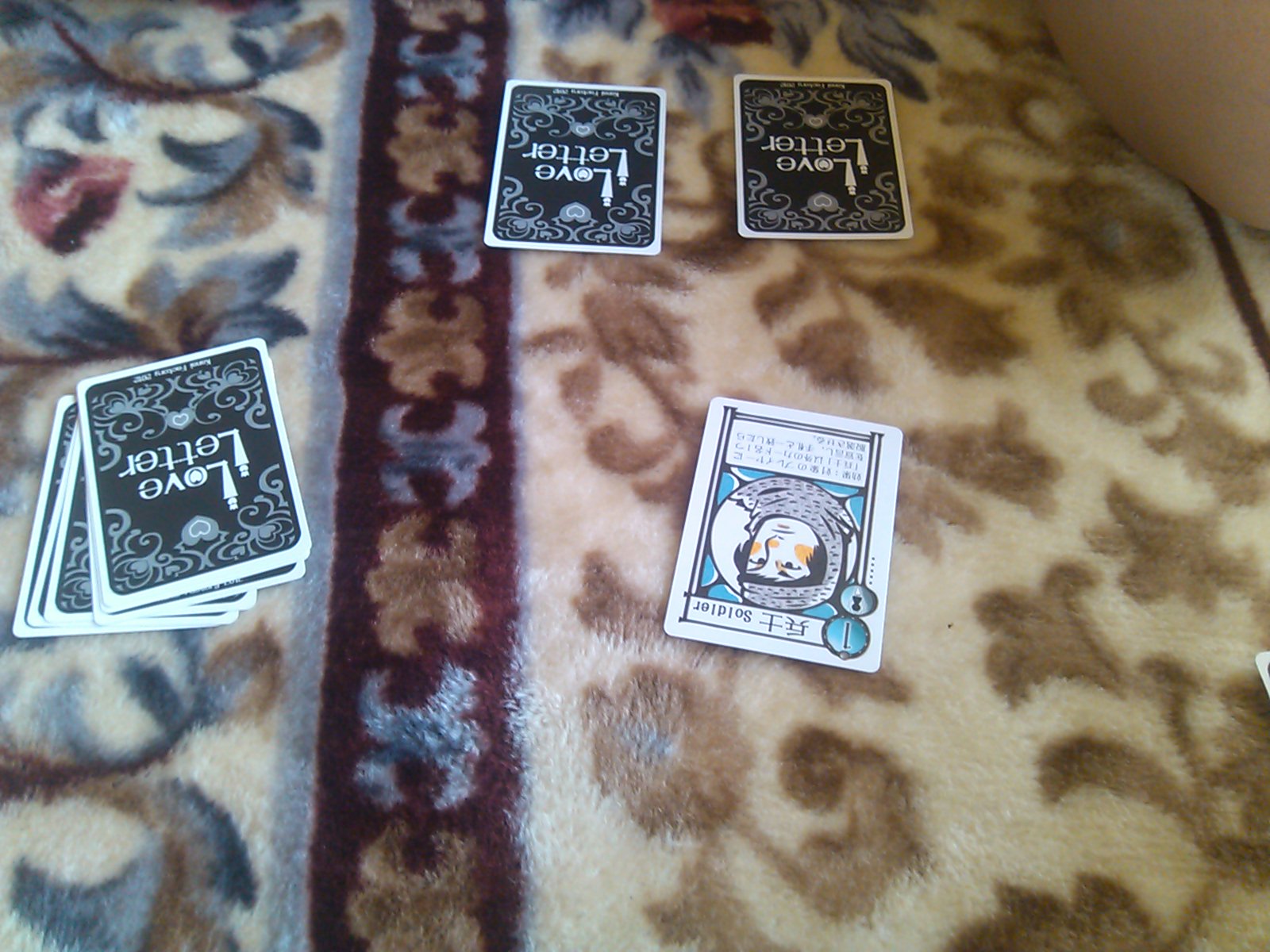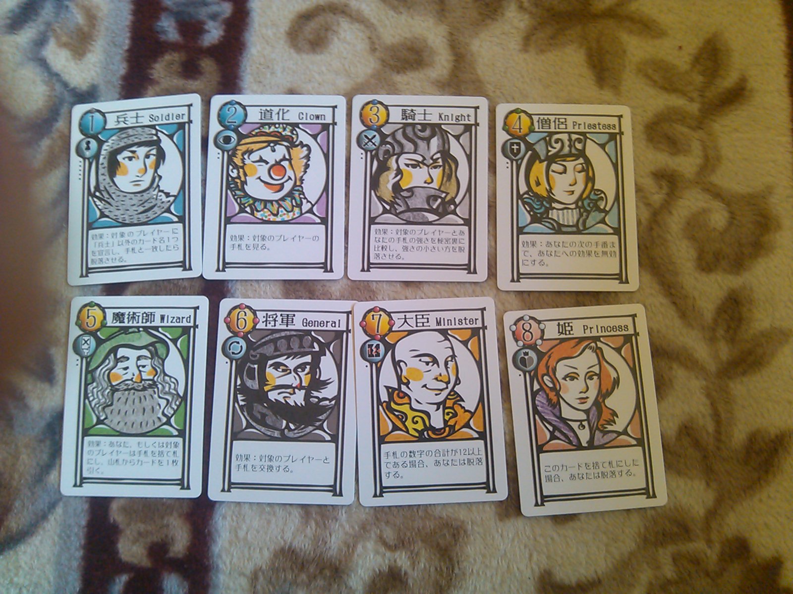 大臣や姫を手札に抑えておきたいのだが、ゲームが進むと自分の手札がカウンティングによりバレてしまったりする。そうすると相手の兵士に刺されるのだ。