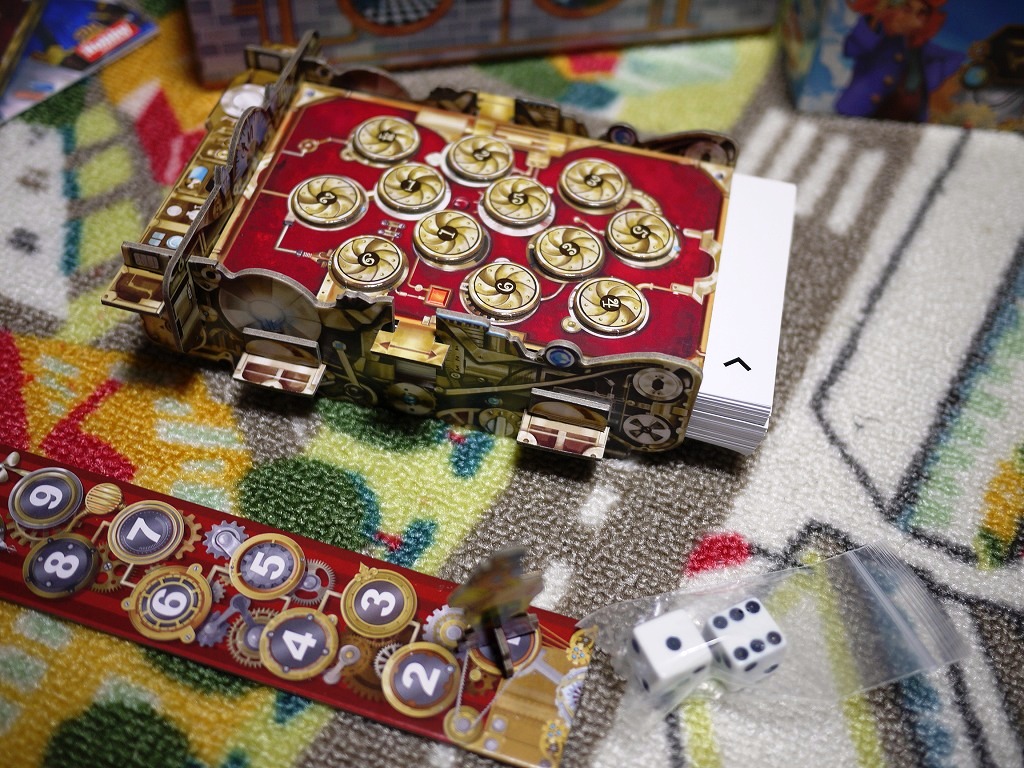すごい書き込みの立体コンポーネントに、ずれないように工夫されている蓋チップ。なかなか演出が効いていて、ゲームも盛り上がります。値段もそこまで高くないですし、コミュニケーションゲーム枠、軽いゲーム枠として持っていていいんじゃないでしょうか?タブレットも使えるしね。