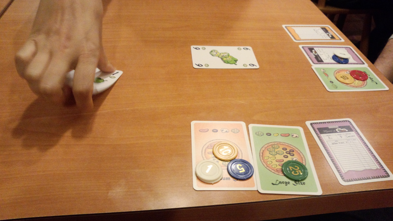 勝てないトリックの時はみんな0を出してくるので、せっかく作ってもまずいピザになりがち。わざとピザを作らないということもできるし、できればLサイズはいい具材の時にとっておきたい。