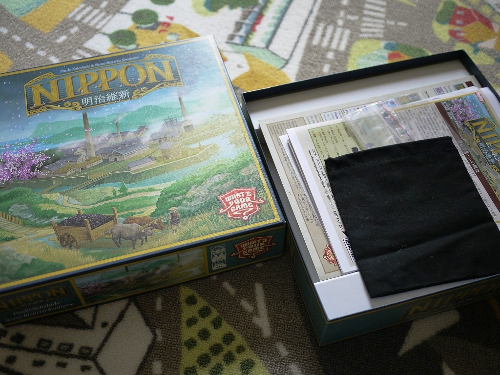 シニョーリエと迷ったんですが、重ゲー2つも買ったらきっと積んでしまう。じゃあ日本テーマのこちらを、ってことで購入いたしました。なんせ、タイトルが直球ですからね。ニッポン!(やってみると、日本感は薄かったのですがww)