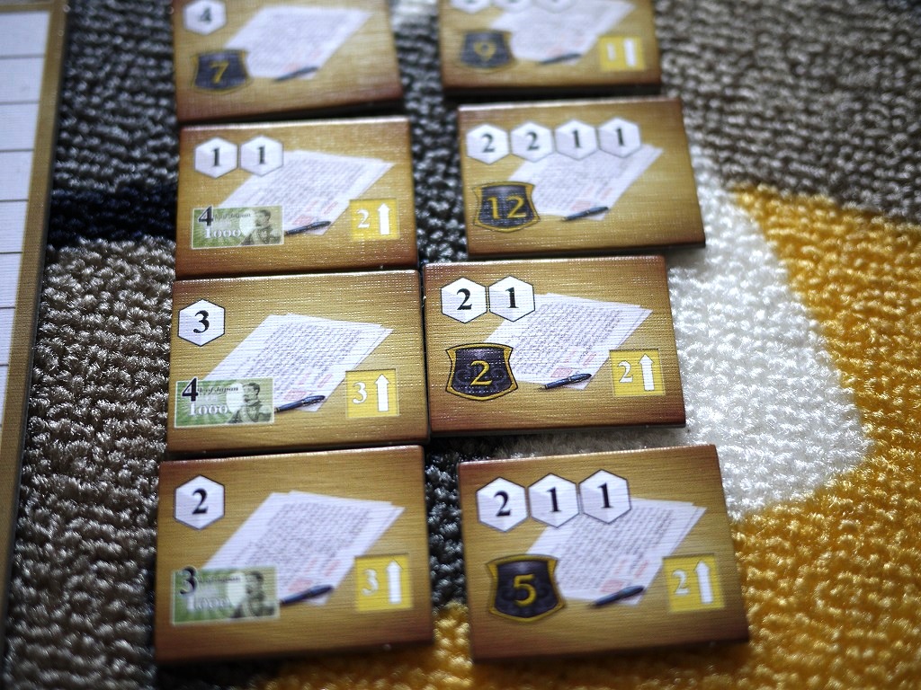 達成報酬は勝利点だったり、収入の増加だったりします。