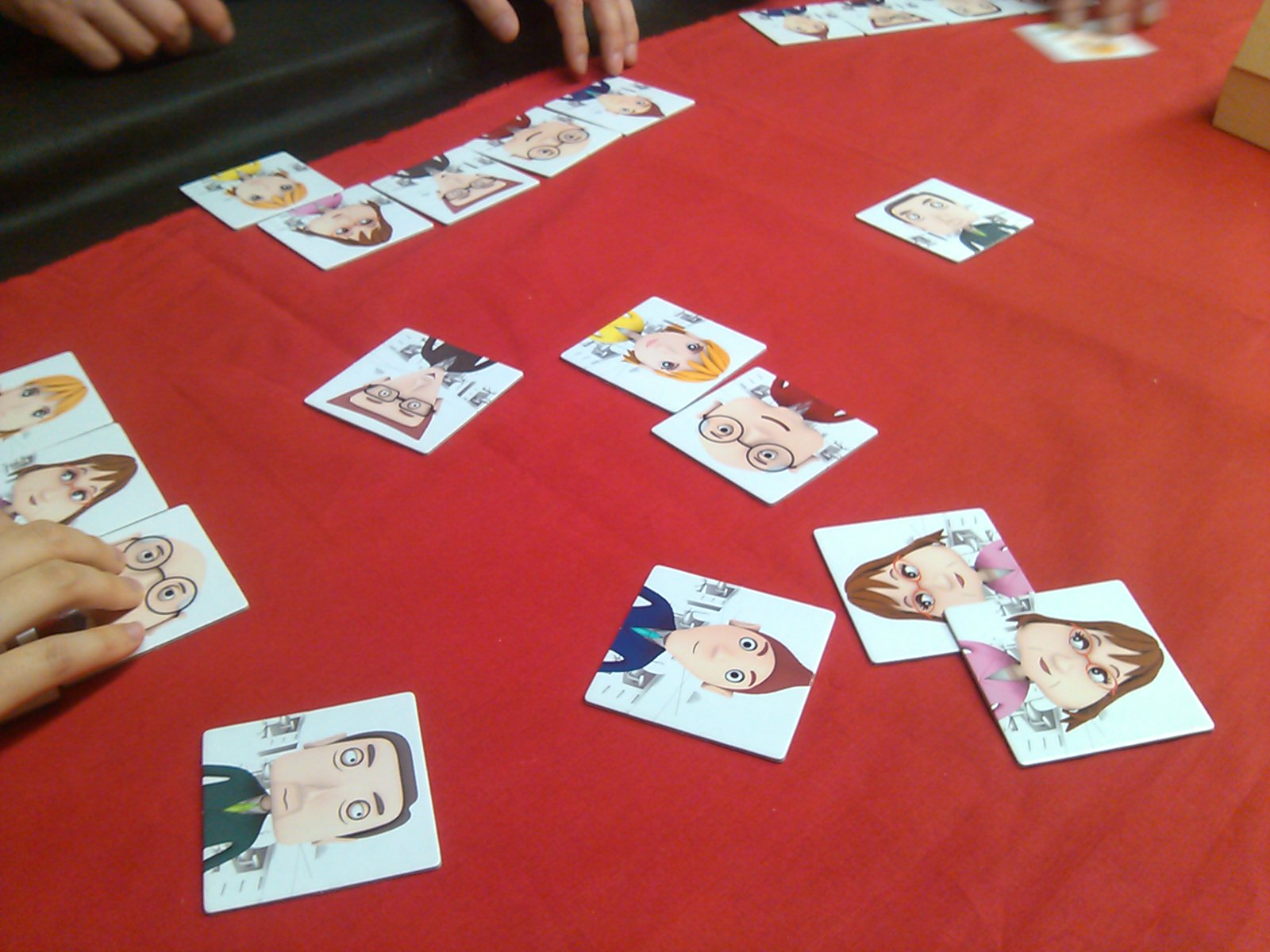 二人プレイの時は各社員を2枚ずつ、12枚持つが、今回は4人プレイ。