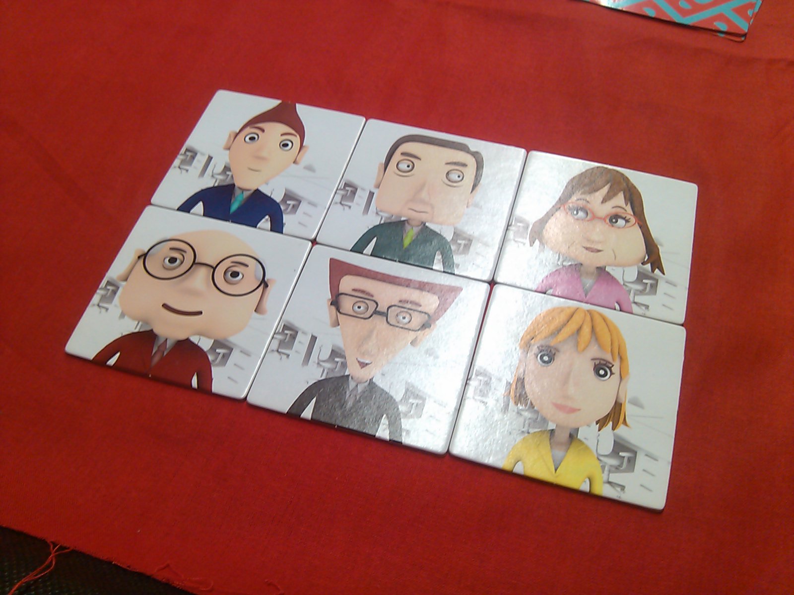 まずは各プレイヤーに6枚のタイルを配る。社員は6人いるので、ダブらないように。