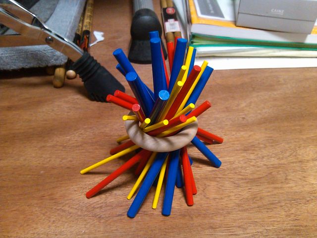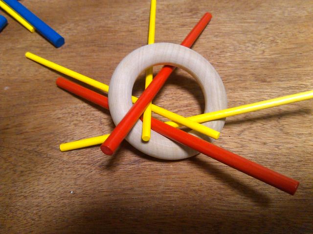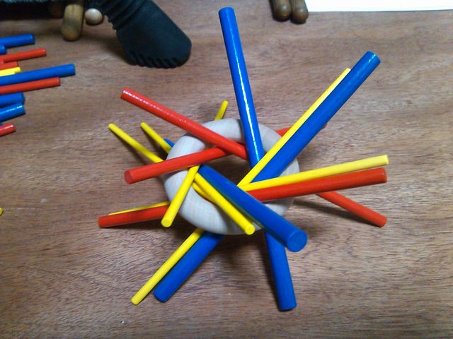 ちなみに大人向けルールとして、最初に抜いた二本で「はし」を作り、それを使ってプレイするというヴァリアントがあった。