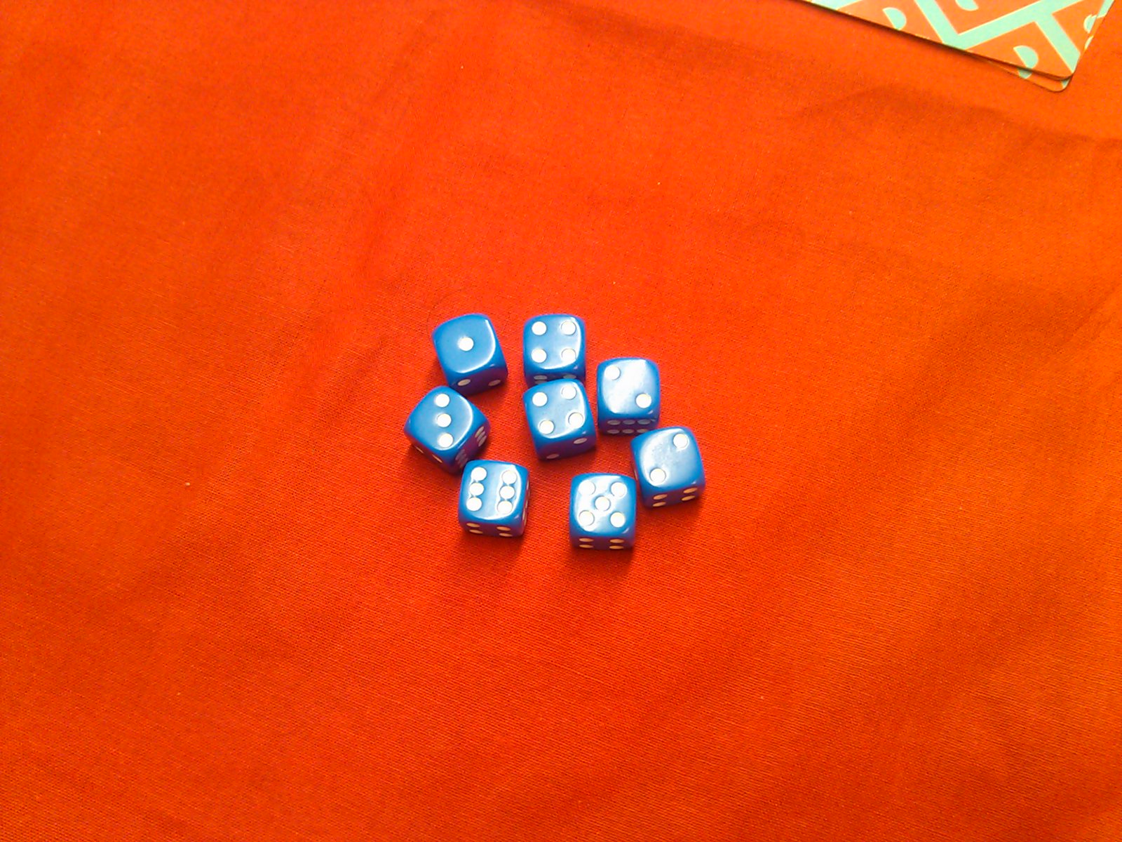 んで、一人8個ずつサイコロを持つ。ひとりずつこの8個をほーいと一斉に振っていく。ブラフより3つも多いので、ダイストレイが欲しいところだ。