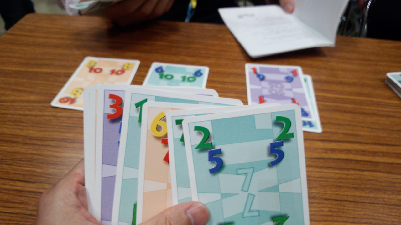 今度は、場に一枚出ているカードのどちらかの数字をみて、必ず小さくなるように数字を出す。その結果、もう片方の数字が大きくなったりして、誰がゴーアウトするまで続ける。0-1のカードを出すのはやめた方がいいかもしれない。