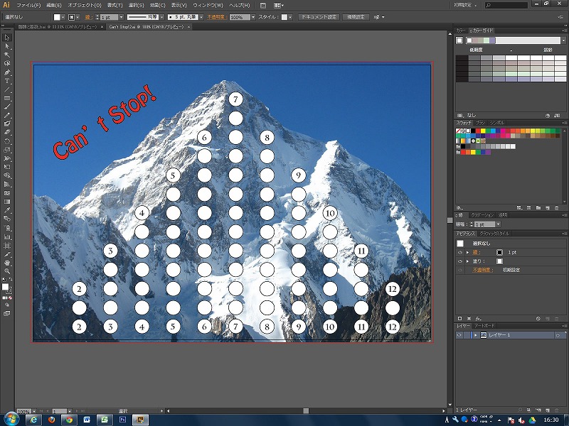 ゲームボードはボードゲームギークにもアップロードされているが、なんか解像度が低くて気に入らないのでイラレで自作。背景はK2。