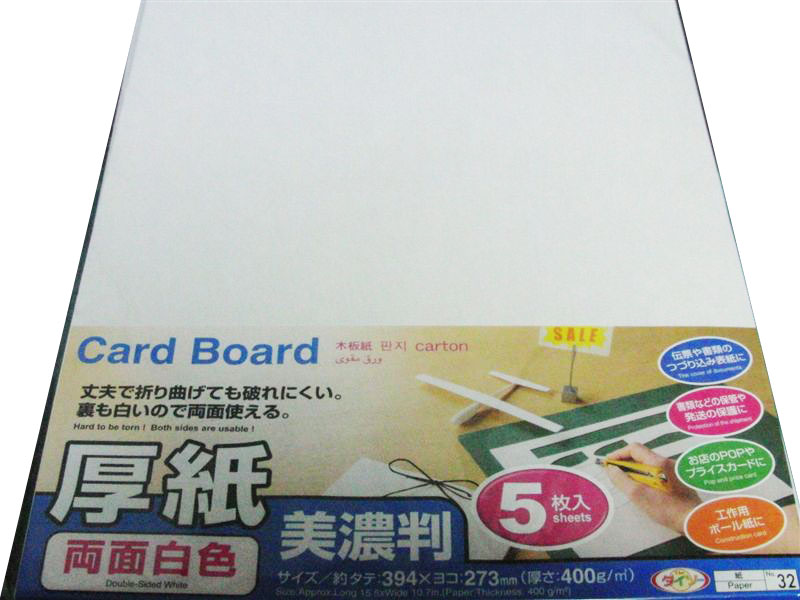 ダイソーで売っている両面白の厚紙。なぜか美濃判が大量にあって、B4サイズが無い。A3だとカバンに入らないので、この美濃判をお買い上げ。100円