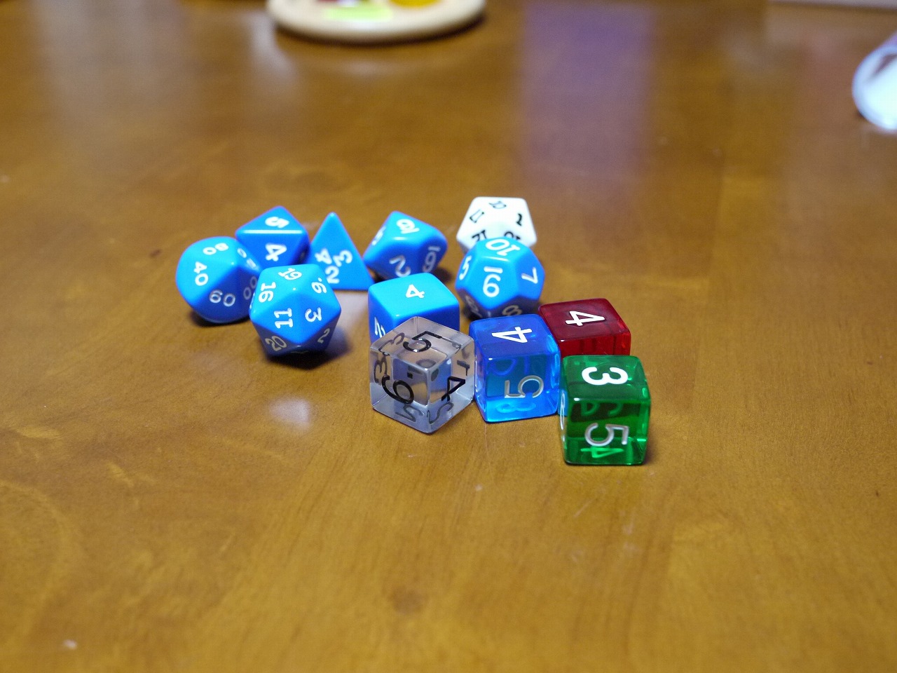 ダイス。キャントストップやビッグチーズに使うために購入。 4・6・8・10・12・20面ダイスがある。