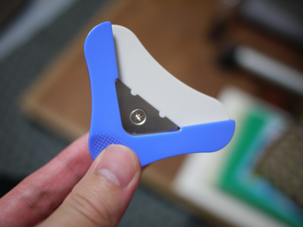 カードスリーブの角が手に刺さって痛い!シャッフルできないよー。というあなたに朗報!5mmのかどまるが簡単にできる便利文房具、「かどまるくん」の出番だ。実売400-500円