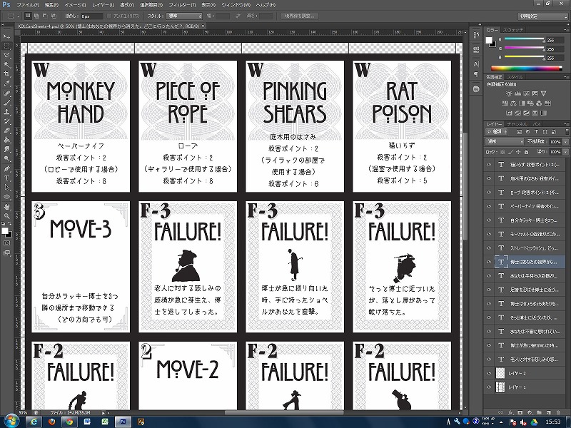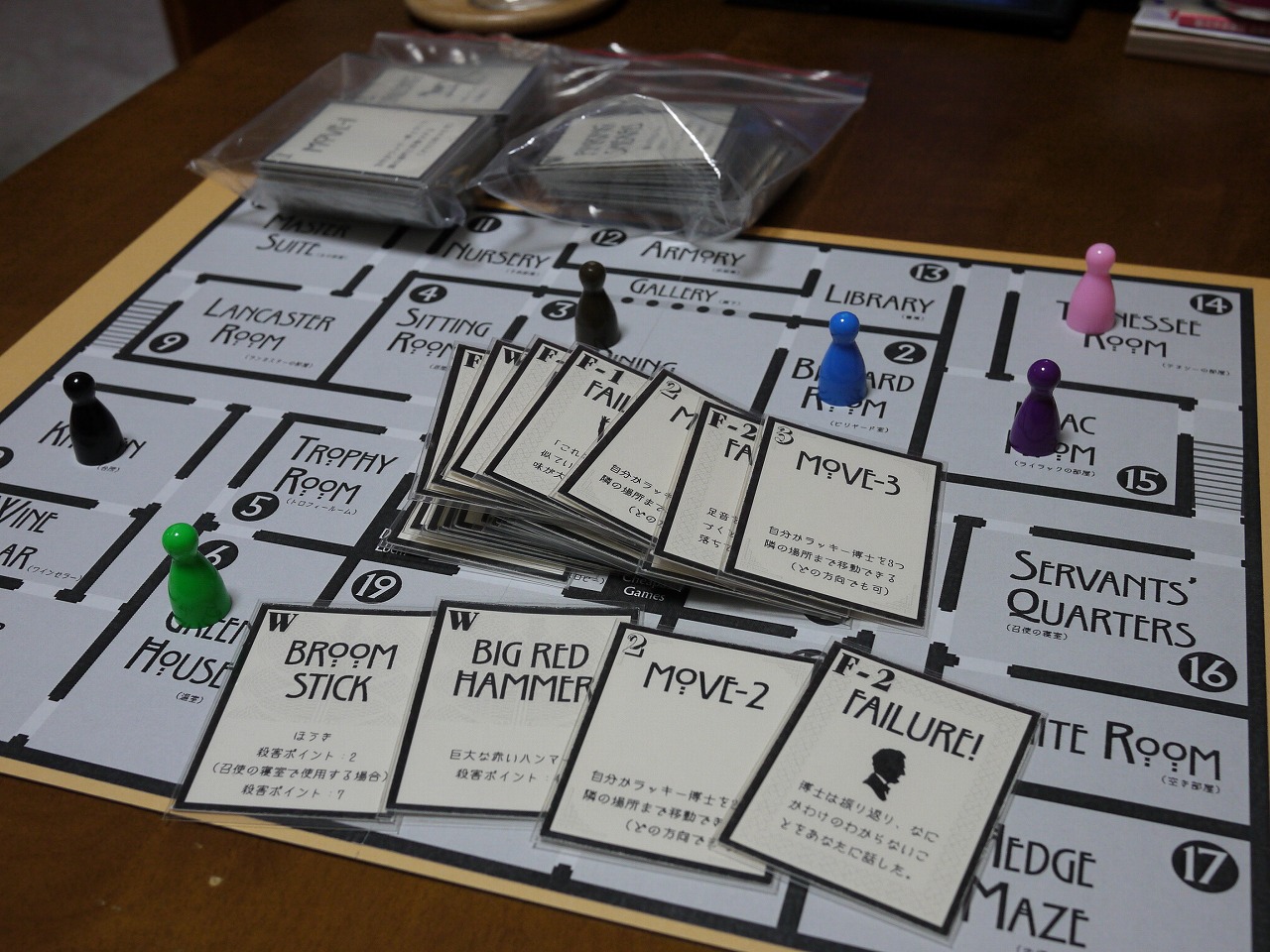 印刷する前に日本語化しておく。「失敗カード」の英文が、ひねりが効いていてものすごく訳しづらい。ゲームには全く関係ないので訳さなくてもいいのだが、乗りかかった船だしやってしまおう。