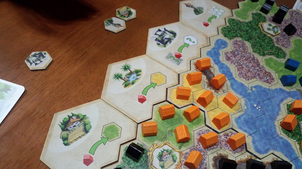 チケライに比べてカタンの評価が落ちるのは、「盗賊で相手の邪魔をする必要があるから」と言った理由から。直接攻撃が多いゲームはダメです。