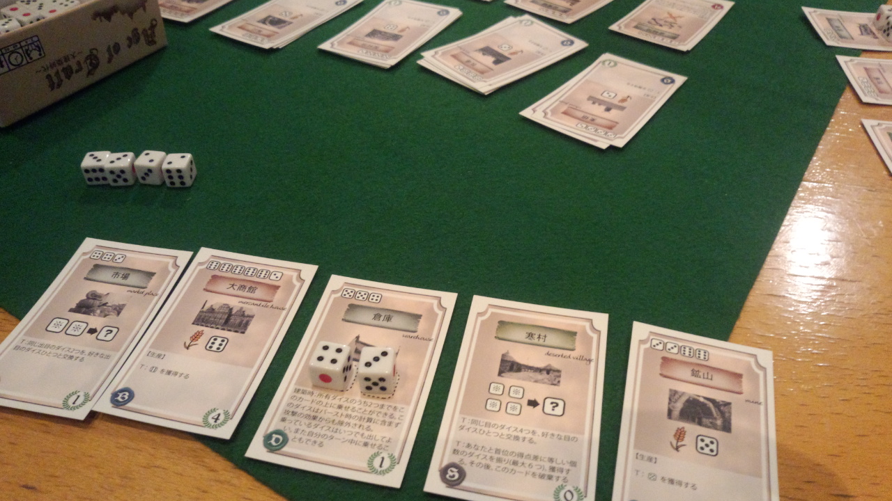 【エイジオブクラフト ★★】ダイスでカードを買ってドミニオン的なカードコンボ。ダイスゲームにしてはちと長い。長考気味だったからか??