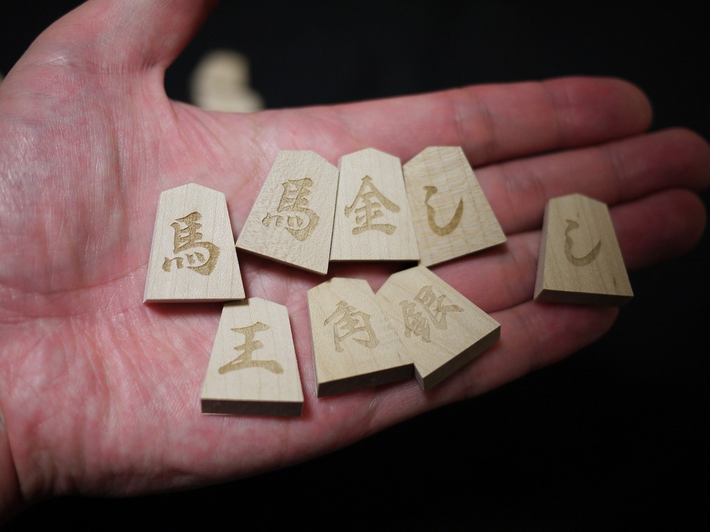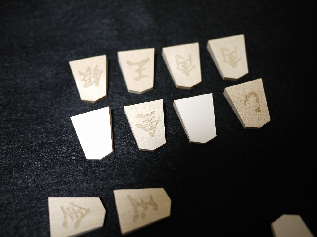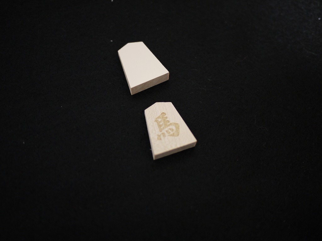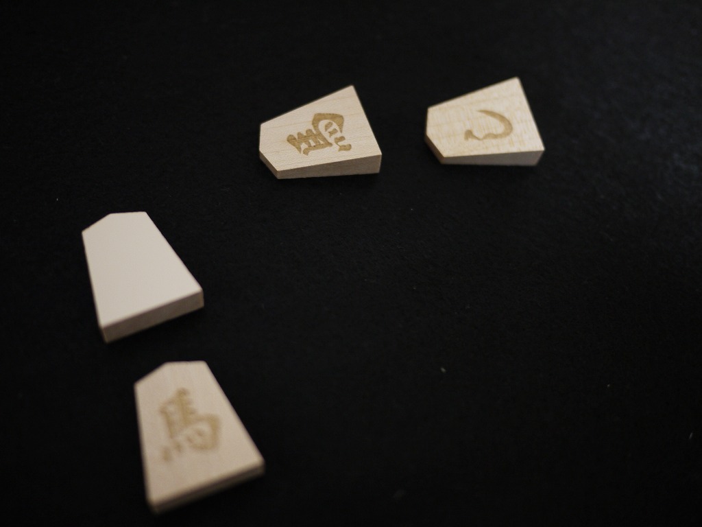 ・無地の将棋駒を買って、筆で書いたり水転写シールを使って文字を書く