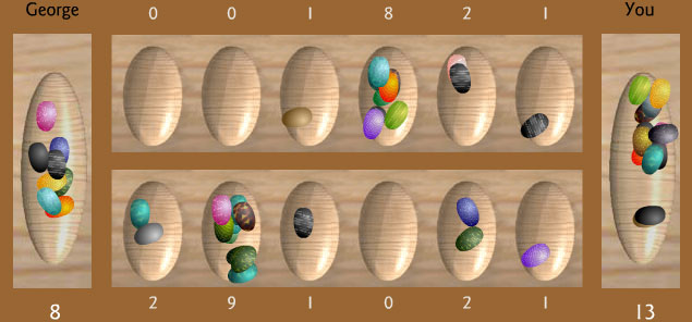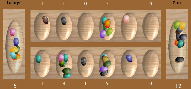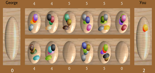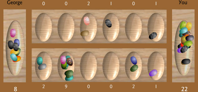 だんだん石が少なくなっていくが、今のところ自分に有利に進んでいる。このFlashマンカラのお相手、George君はちょっと弱っちいのだ。