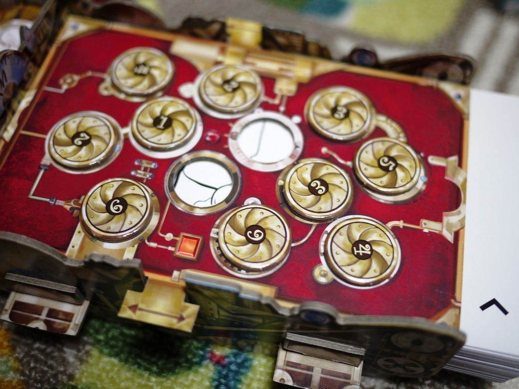 すごい書き込みの立体コンポーネントに、ずれないように工夫されている蓋チップ。なかなか演出が効いていて、ゲームも盛り上がります。値段もそこまで高くないですし、コミュニケーションゲーム枠、軽いゲーム枠として持っていていいんじゃないでしょうか?タブレットも使えるしね。