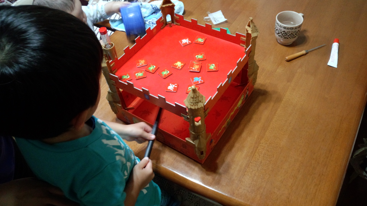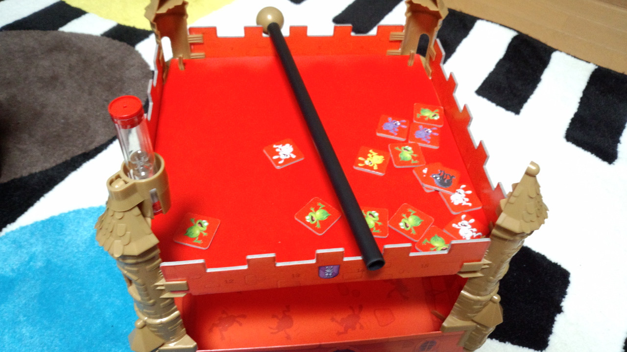 こんなかんじで魔法使いの塔(城?)を組み立てたら、スタートプレイヤーから順に魔法の杖をもって・・・