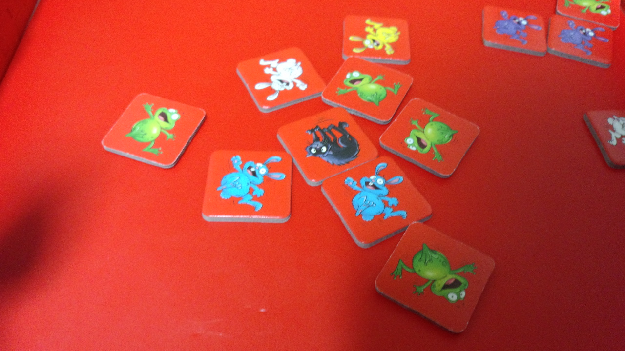 任意なのですが、まだカエル面が表になっているタイルを一枚だけ、手で裏返せます。自分の色のウサギだったら得点なのですが、逆に他の人の得点になることも。