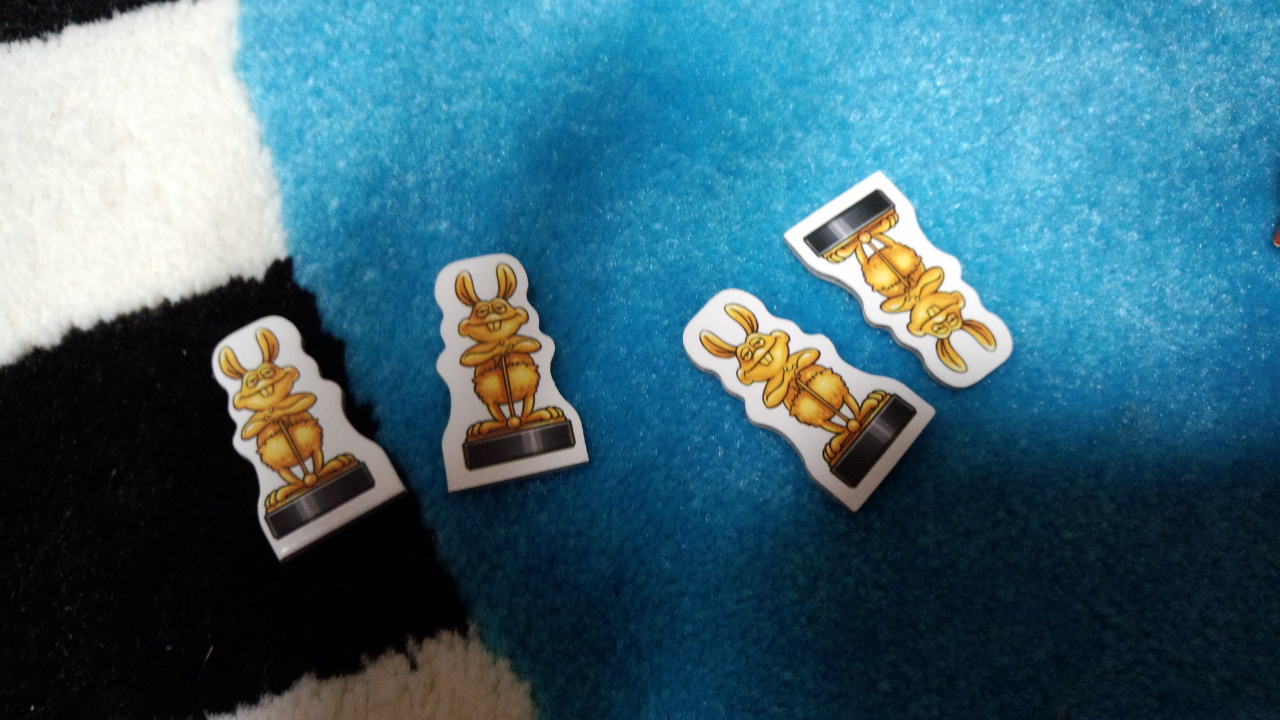 全員分のラウンドが終わったら、コウモリ型の得点マーカーが一番進んでいる人にトロフィータイルをあげます。