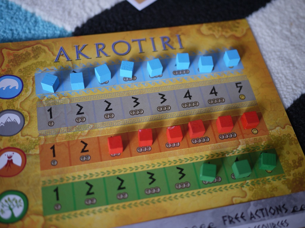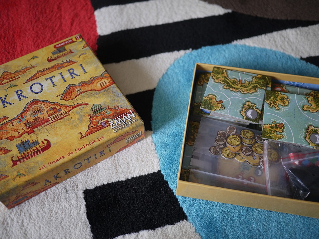 レビューサイトの評価は軒並み良いものの、2人専用でオープンボードゲーム会で活躍しない、そもそもあまり出回りが良くない というマイナス条件から、話題にも上らないゲーム。それがアクロティリです。