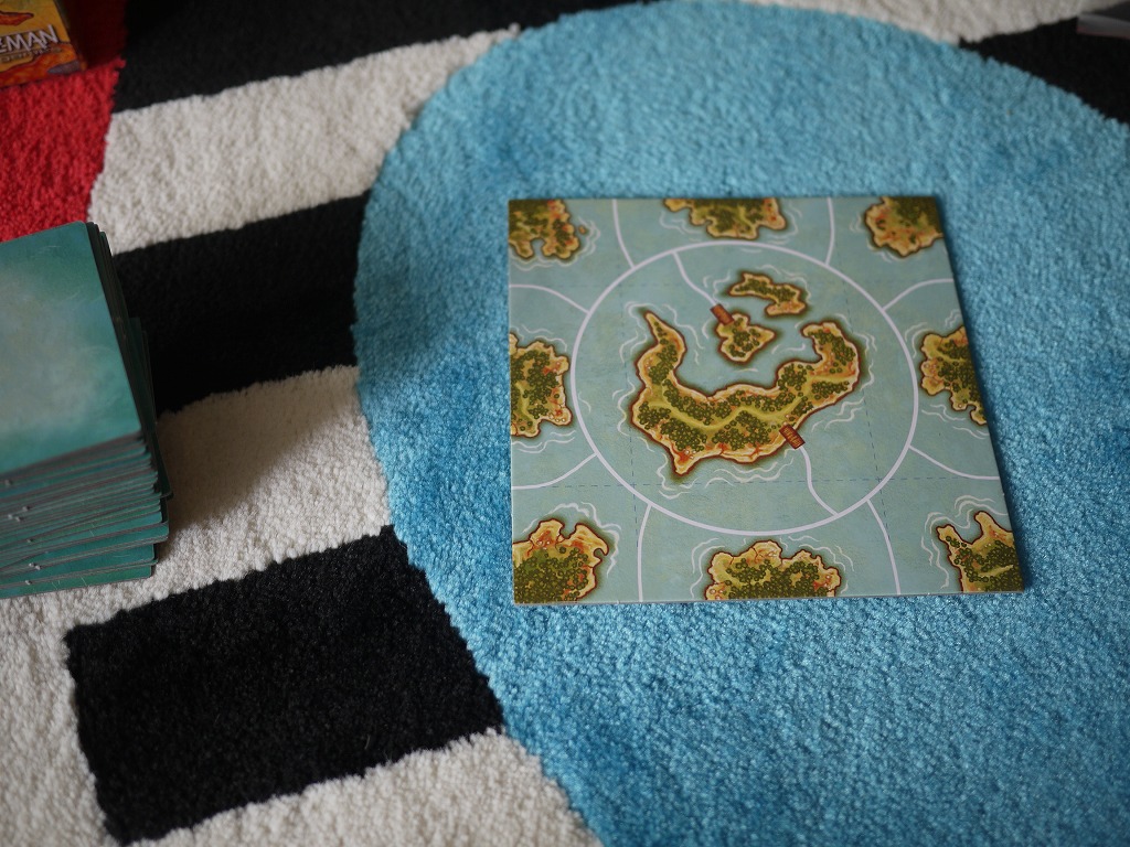 まずは手札のタイルを配置します。必ず配置済みのタイルと辺で接するように。また、最初から大きな「テーラ島」が配置されています。