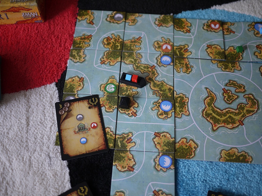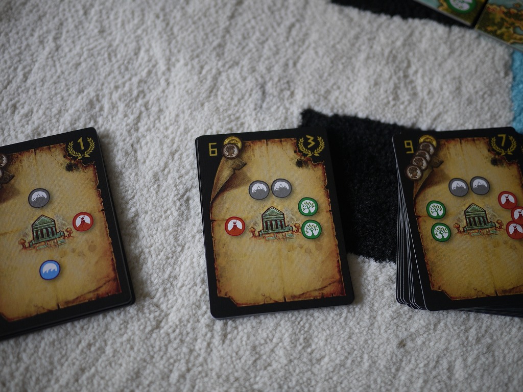 こうして手番を繰り返していき、どちらかが6つの神殿を発見したらゲーム終了。勝利点が高いほうが勝利です。