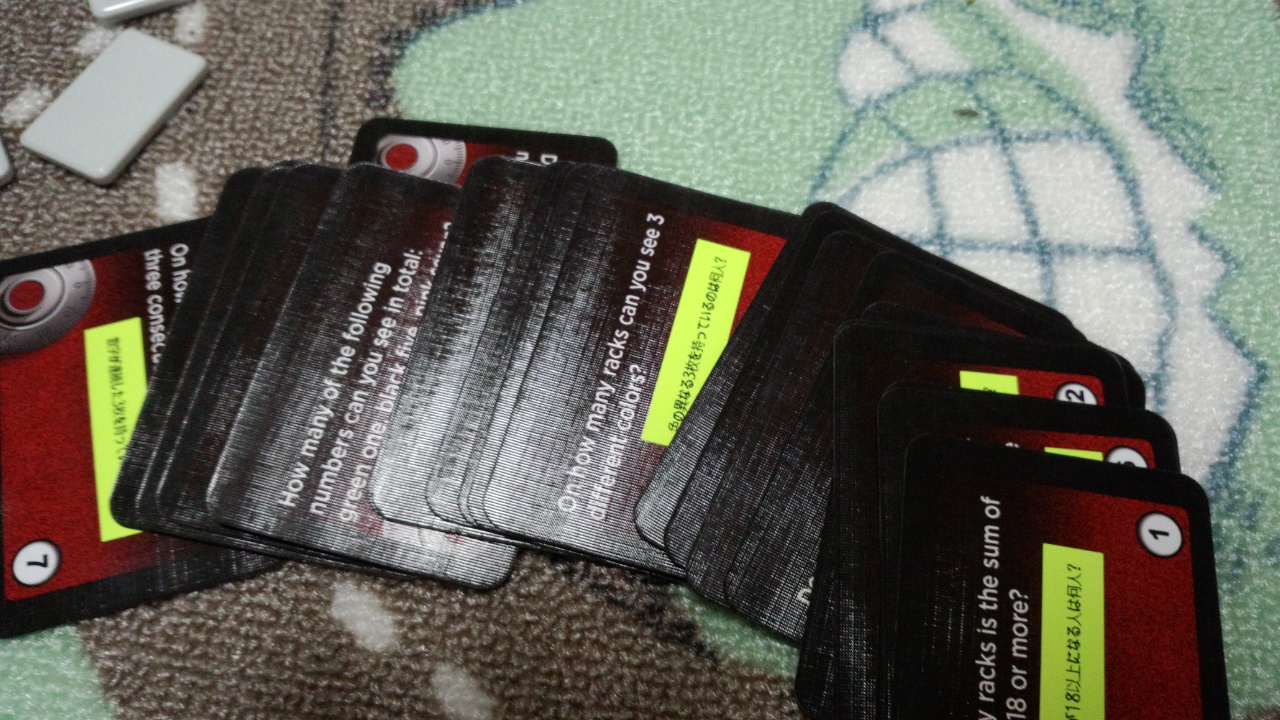 ここが難点ですね。和訳については、カードの英語は非常に平易なのでなくても大丈夫といえば大丈夫です。大人同士で遊ぶならほぼ問題にならないでしょう。「黄色と赤 どちらが多い?」とかそんな程度なので。