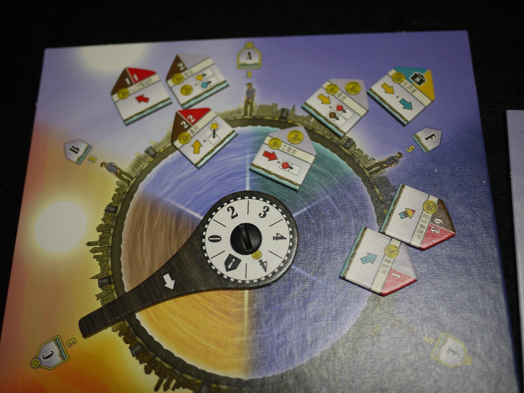 箱絵に描いてある「プレイ時間30分」の表記。いやいや、それはさすがにないだろ!最初の数ラウンドはアクション数が少なく、拍子抜けするぐらい早く進むが、後半のラウンドは1ラウンドごとに9アクションあるので長いぞ!