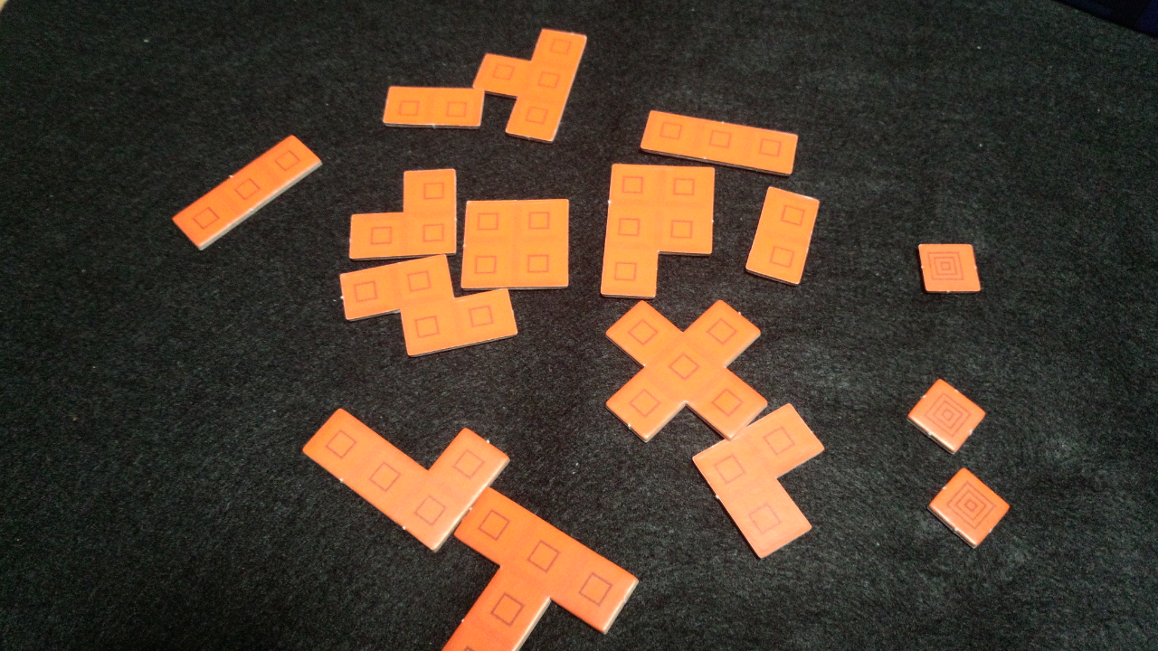 ・各プレイヤーは、2~5マスで構成されたタイルと、「柱」(1マスのタイル)を3枚持ってスタート