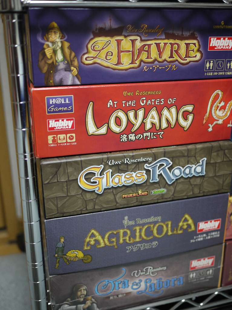 収穫三部作とは? ウヴェ・ローゼンベルグが放ったスマッシュヒット作「アグリコラ」を筆頭に、「ルアーブル」「洛陽の門にて」と続く重ゲー3連荘だ。しかしその後、「祈り働け」「カヴェルナ」と立て続けにワーカープレイスメント作品を出したため、なんか三部作でもなんでもなくなってしまった。洛陽の門にてに至っては、ワカプレじゃないしね。