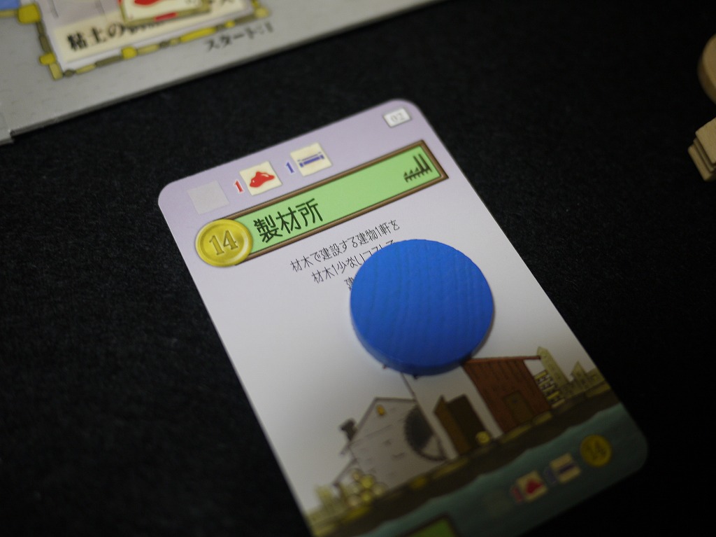 資源を支払ったら手元に持ってきます。建物にはコインマークの中に数字が書かれているのですが、これが勝利点です。