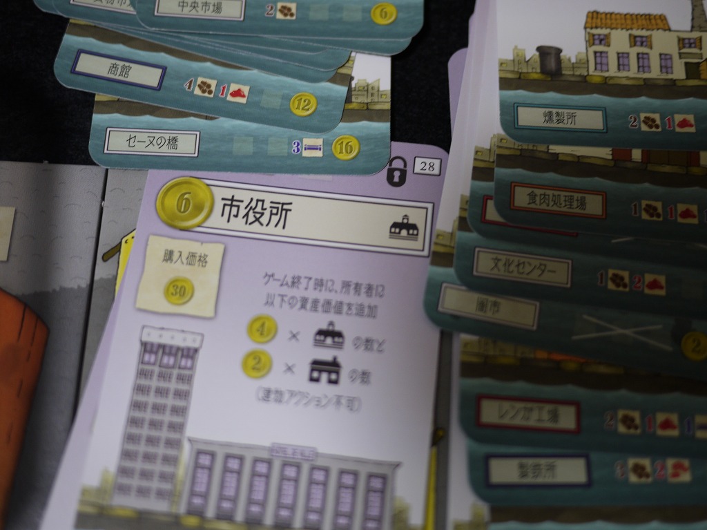 アクションを取りえる幅が、全員分の建物に及ぶので後半は最適解を見つけるのが大変になります。そこが楽しいんですけどね。